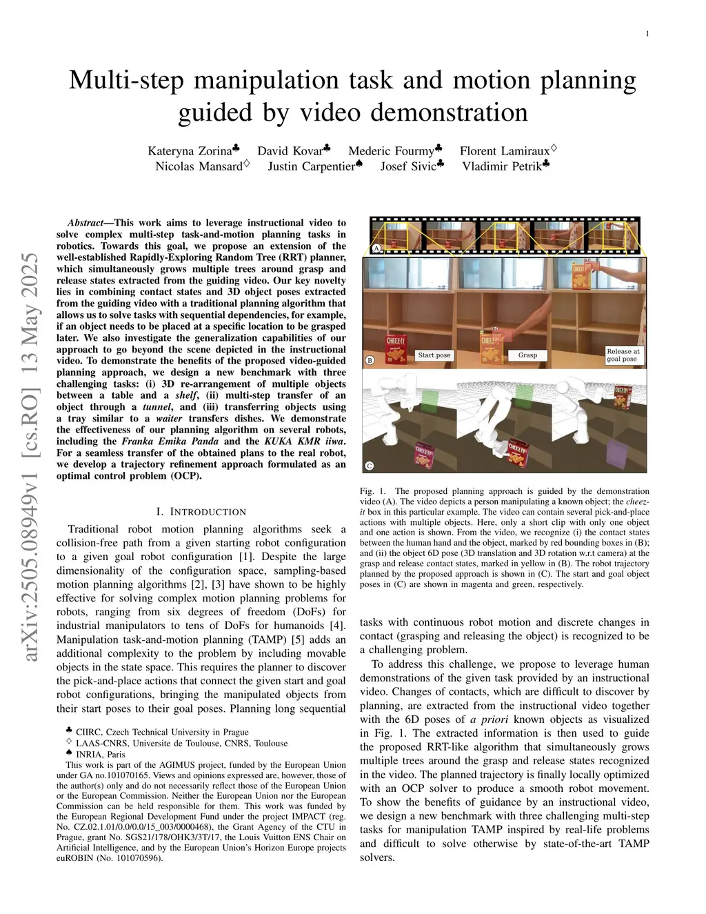 Multi-step manipulation task and motion planning guided by video demonstration