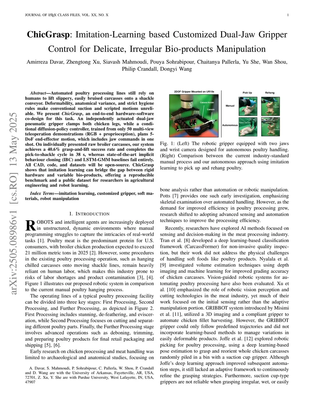 ChicGrasp: Imitation-Learning based Customized Dual-Jaw Gripper Control for Delicate, Irregular Bio-products Manipulation