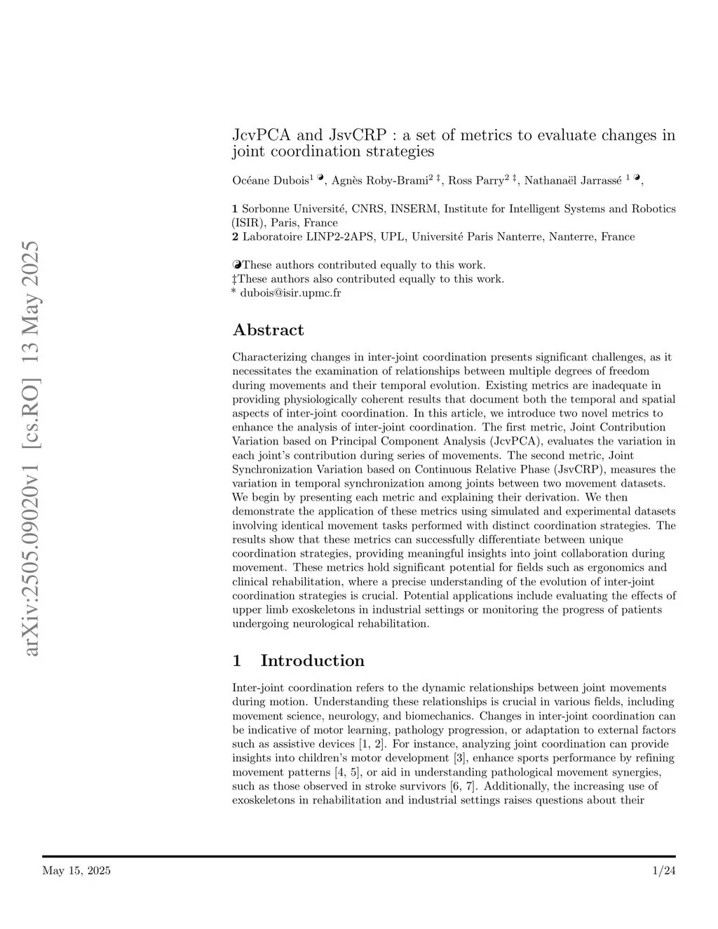 JcvPCA and JsvCRP : a set of metrics to evaluate changes in joint coordination strategies
