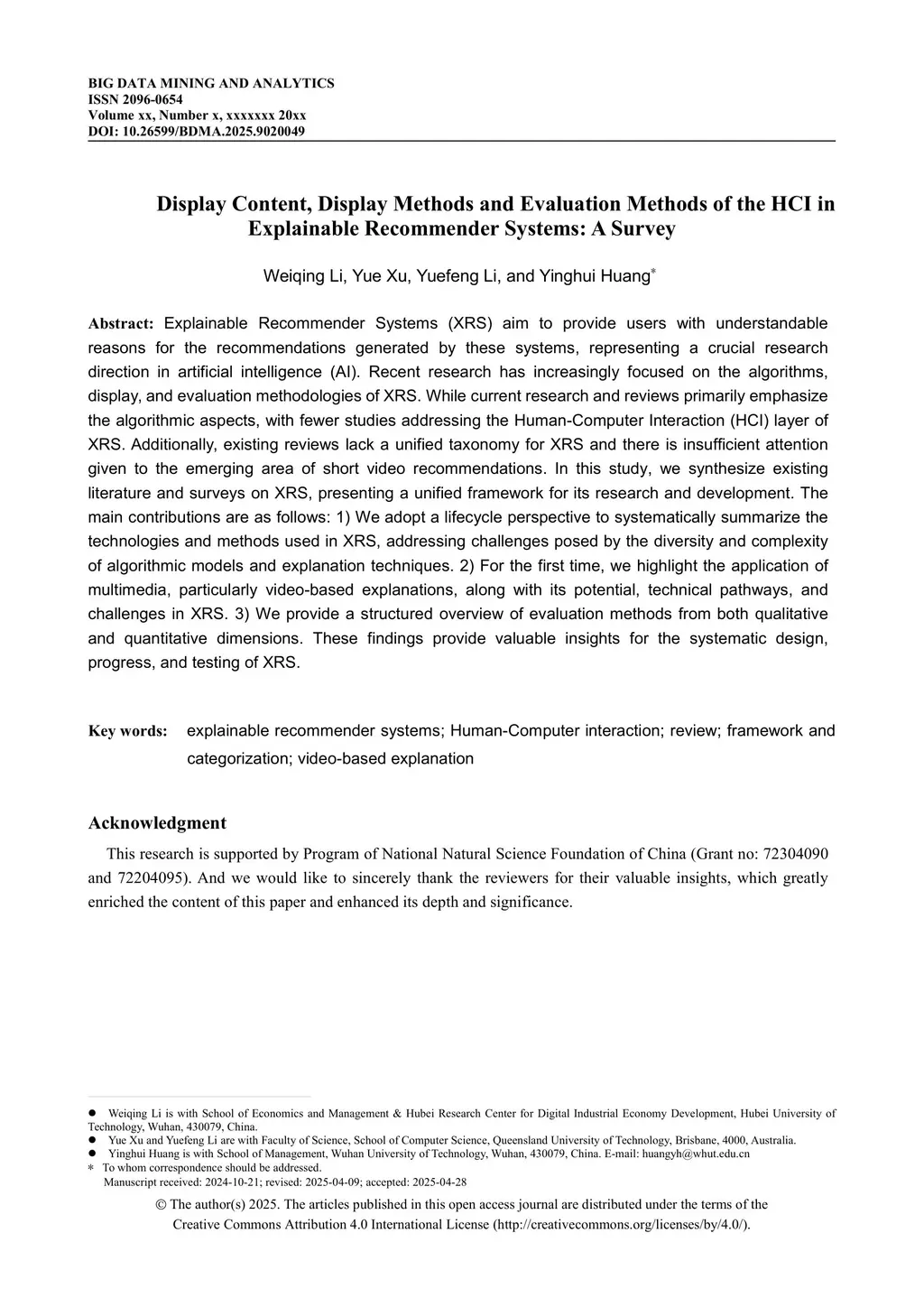 Display Content, Display Methods and Evaluation Methods of the HCI in Explainable Recommender Systems: A Survey