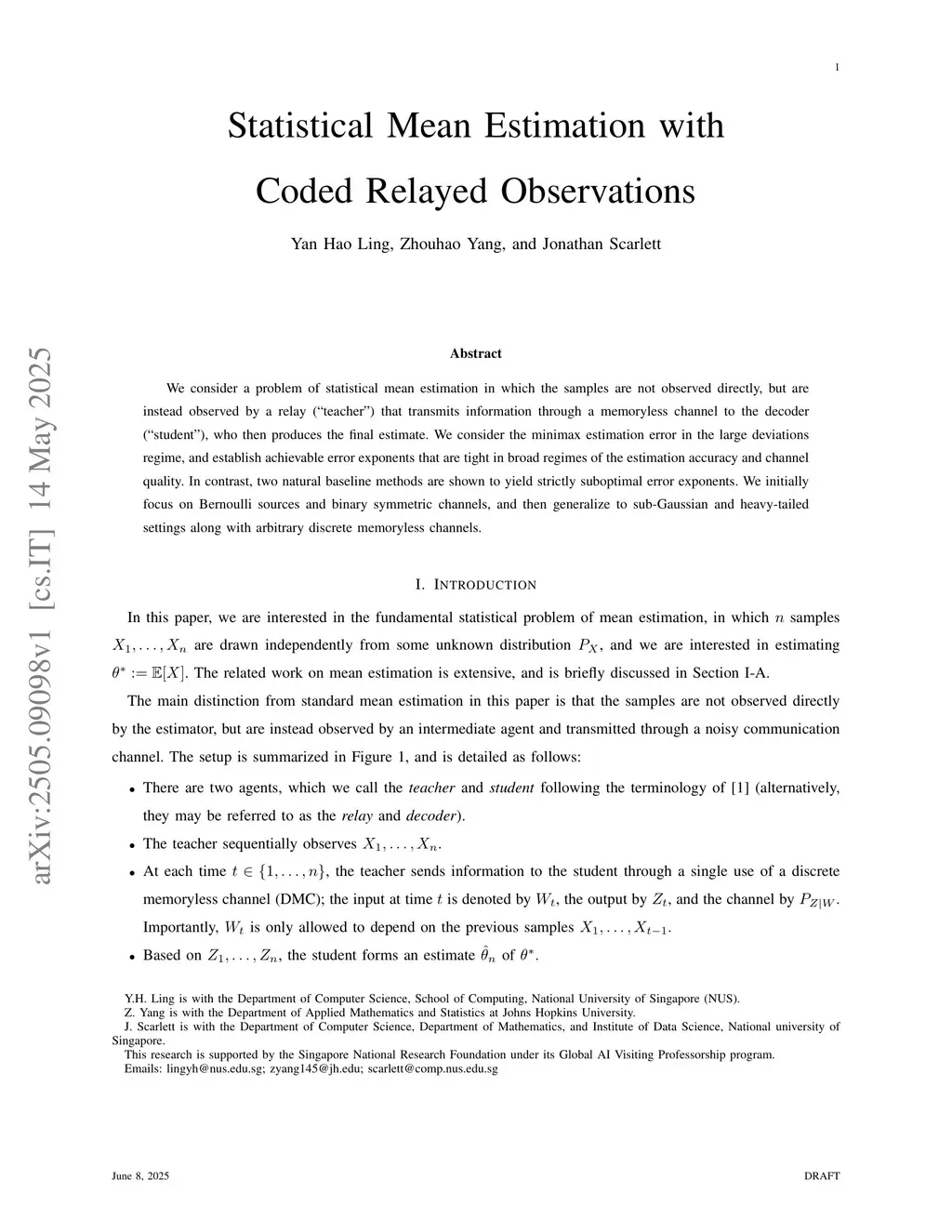 We consider a problem of statistical mean estimation in which the samples are not observed directly, but are instead observed by a relay (``teacher'') that transmits information through a memoryless channel to the decoder (``student''), who then produces the final estimate. We consider the minimax estimation error in the large deviations regime, and establish achievable error exponents that are tight in broad regimes of the estimation accuracy and channel quality. In contrast, two natural baseline methods are shown to yield strictly suboptimal error exponents. We initially focus on Bernoulli sources and binary symmetric channels, and then generalize to sub-Gaussian and heavy-tailed settings along with arbitrary discrete memoryless channels.