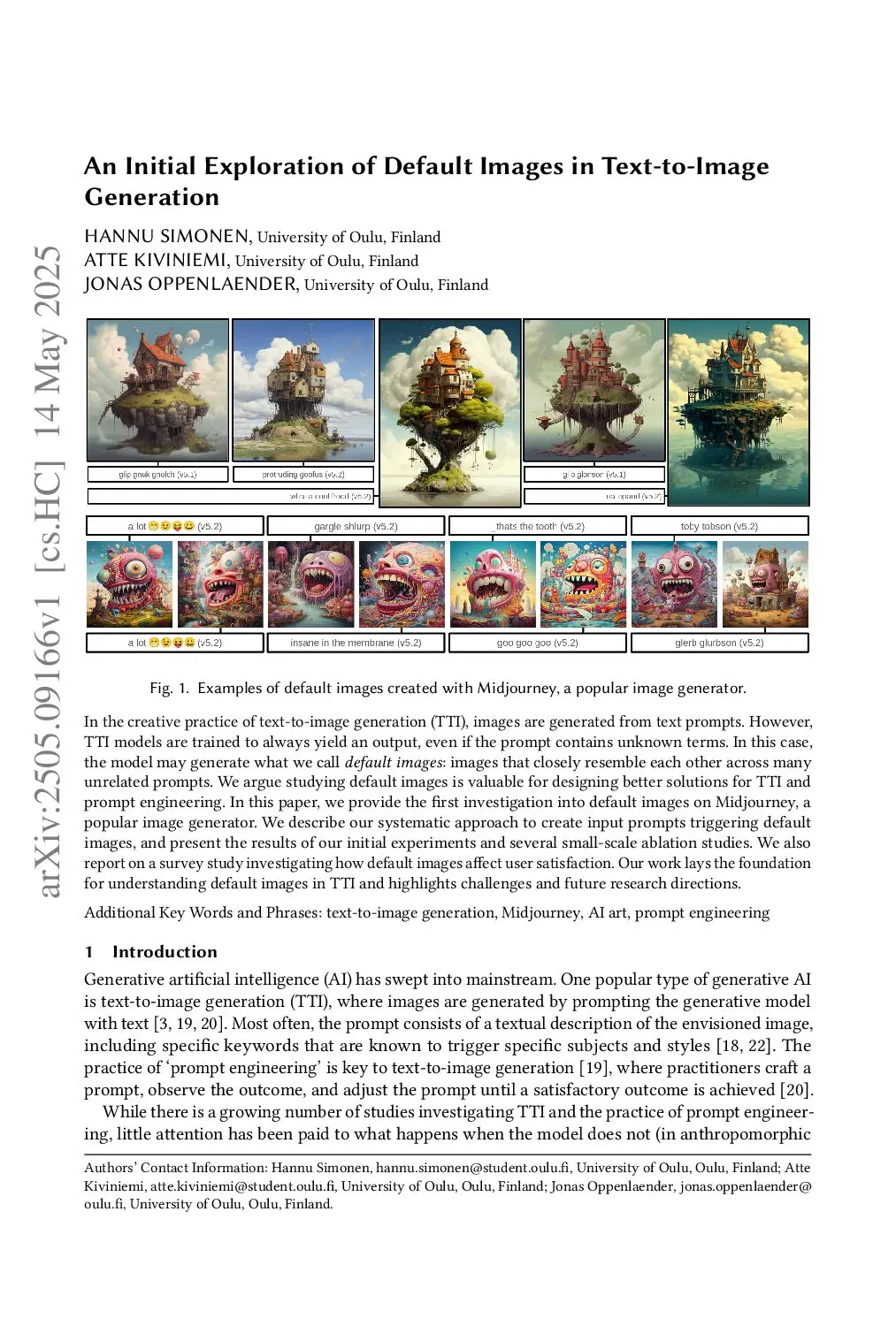 In the creative practice of text-to-image (TTI) generation, images are synthesized from textual prompts. By design, TTI models always yield an output, even if the prompt contains unknown terms. In this case, the model may generate default images: images that closely resemble each other across many unrelated prompts. Studying default images is valuable for designing better solutions for prompt engineering and TTI generation. We present the first investigation into default images on Midjourney. We describe an initial study in which we manually created input prompts triggering default images, and several ablation studies. Building on these, we conduct a computational analysis of over 750,000 images, revealing consistent default images across unrelated prompts. We also conduct an online user study investigating how default images may affect user satisfaction. Our work lays the foundation for understanding default images in TTI generation, highlighting their practical relevance as well as challenges and future research directions.