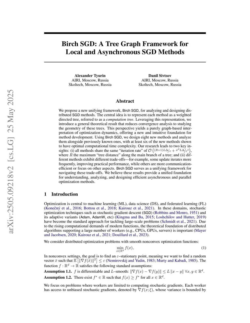 Birch SGD: A Tree Graph Framework for Local and Asynchronous SGD Methods