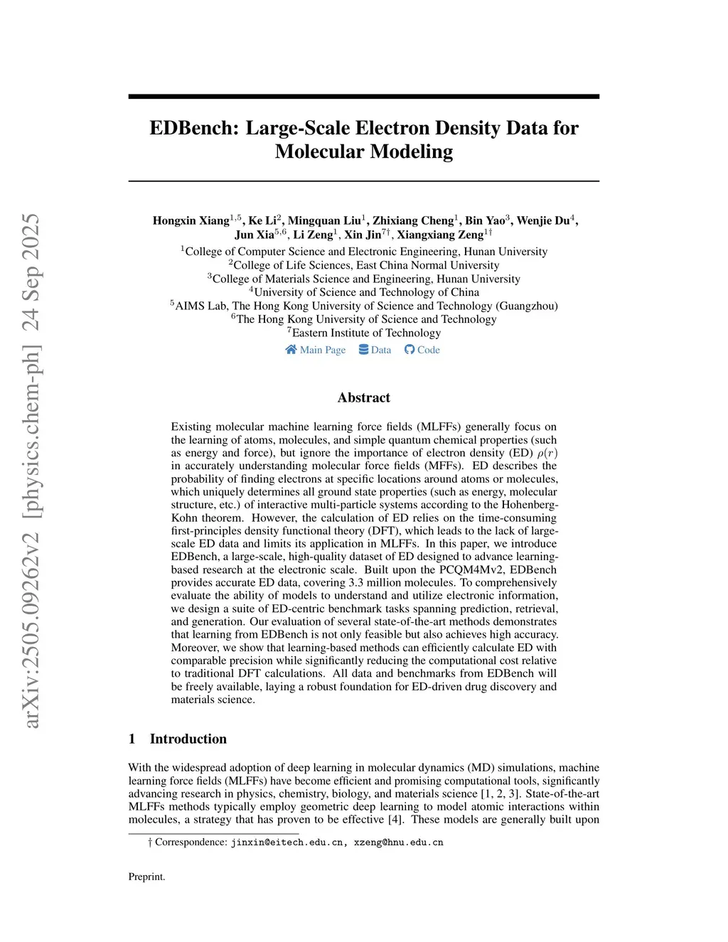 Existing molecular machine learning force fields (MLFFs) generally focus on the learning of atoms, molecules, and simple quantum chemical properties (such as energy and force), but ignore the importance of electron density (ED) ρ(r)\rho(r) in accurately understanding molecular force fields (MFFs). ED describes the probability of finding electrons at specific locations around atoms or molecules, which uniquely determines all ground state properties (such as energy, molecular structure, etc.) of interactive multi-particle systems according to the Hohenberg-Kohn theorem. However, the calculation of ED relies on the time-consuming first-principles density functional theory (DFT) which leads to the lack of large-scale ED data and limits its application in MLFFs. In this paper, we introduce EDBench, a large-scale, high-quality dataset of ED designed to advance learning-based research at the electronic scale. Built upon the PCQM4Mv2, EDBench provides accurate ED data, covering 3.3 million molecules. To comprehensively evaluate the ability of models to understand and utilize electronic information, we design a suite of ED-centric benchmark tasks spanning prediction, retrieval, and generation. Our evaluation on several state-of-the-art methods demonstrates that learning from EDBench is not only feasible but also achieves high accuracy. Moreover, we show that learning-based method can efficiently calculate ED with comparable precision while significantly reducing the computational cost relative to traditional DFT calculations. All data and benchmarks from EDBench will be freely available, laying a robust foundation for ED-driven drug discovery and materials science.
