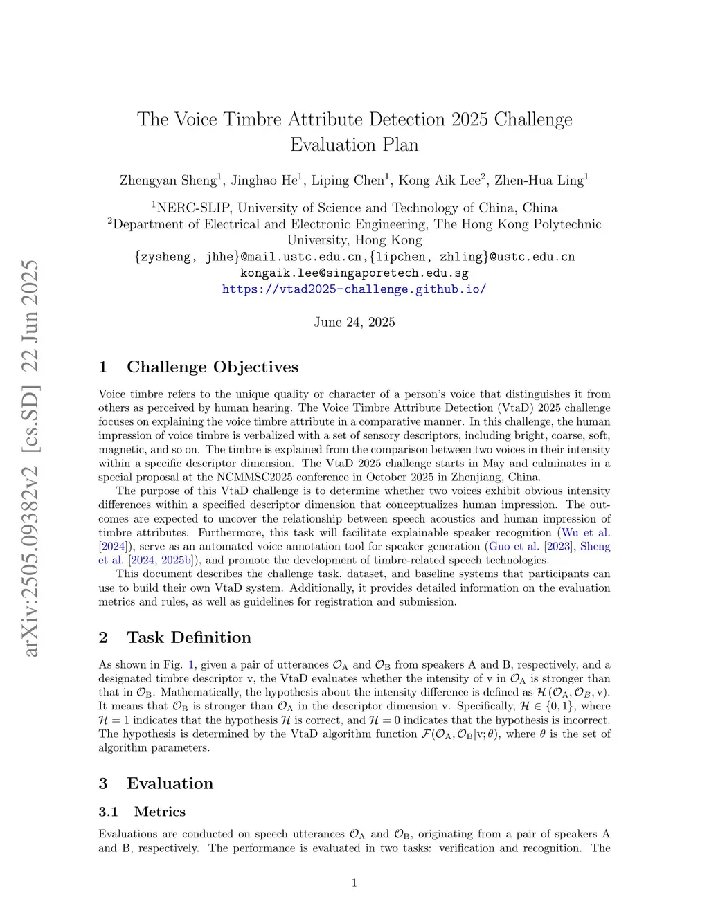 The Voice Timbre Attribute Detection 2025 Challenge Evaluation Plan