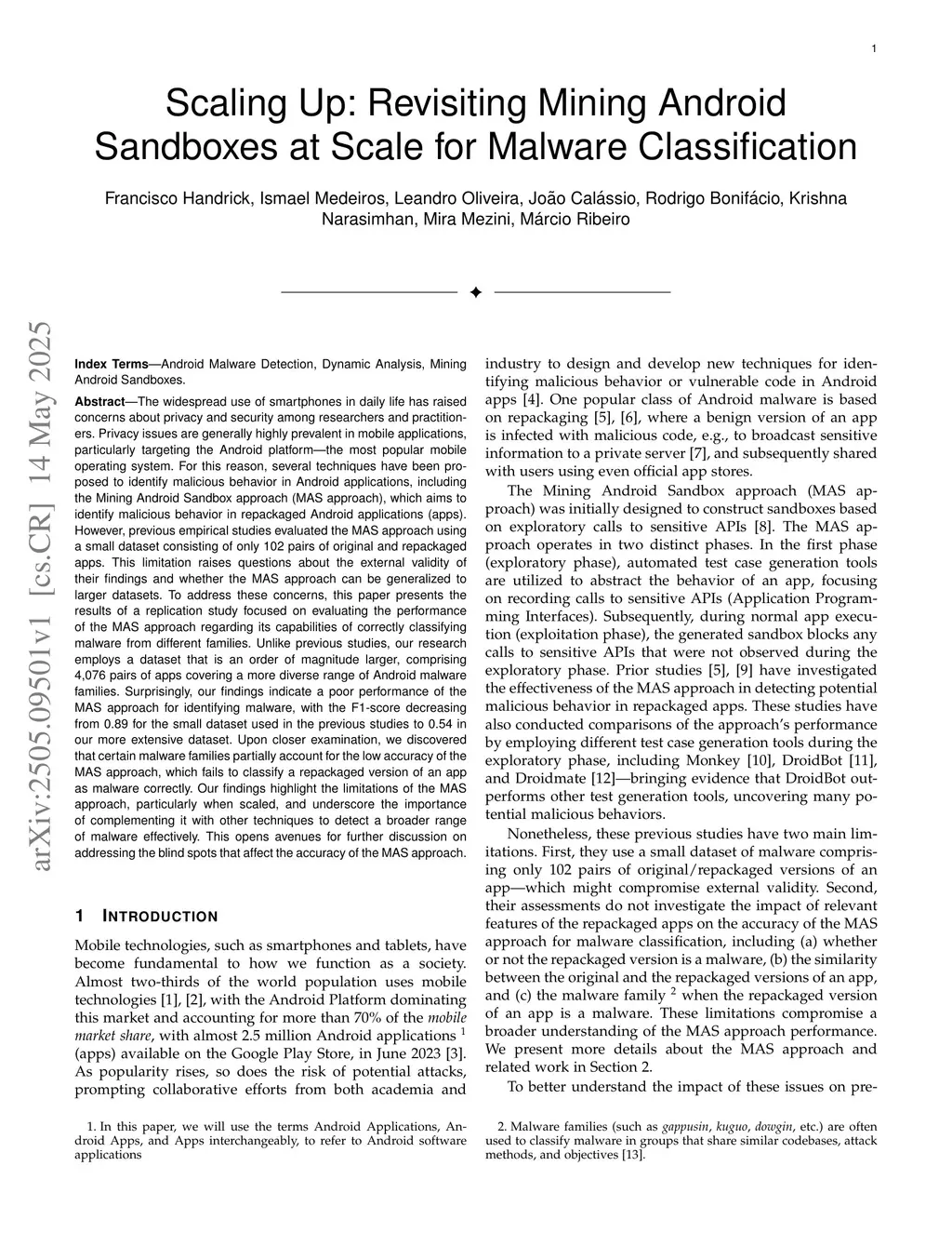 The widespread use of smartphones in daily life has raised concerns about privacy and security among researchers and practitioners. Privacy issues are generally highly prevalent in mobile applications, particularly targeting the Android platform, the most popular mobile operating system. For this reason, several techniques have been proposed to identify malicious behavior in Android applications, including the Mining Android Sandbox approach (MAS approach), which aims to identify malicious behavior in repackaged Android applications (apps). However, previous empirical studies evaluated the MAS approach using a small dataset consisting of only 102 pairs of original and repackaged apps. This limitation raises questions about the external validity of their findings and whether the MAS approach can be generalized to larger datasets. To address these concerns, this paper presents the results of a replication study focused on evaluating the performance of the MAS approach regarding its capabilities of correctly classifying malware from different families. Unlike previous studies, our research employs a dataset that is an order of magnitude larger, comprising 4,076 pairs of apps covering a more diverse range of Android malware families. Surprisingly, our findings indicate a poor performance of the MAS approach for identifying malware, with the F1-score decreasing from 0.90 for the small dataset used in the previous studies to 0.54 in our more extensive dataset. Upon closer examination, we discovered that certain malware families partially account for the low accuracy of the MAS approach, which fails to classify a repackaged version of an app as malware correctly. Our findings highlight the limitations of the MAS approach, particularly when scaled, and underscore the importance of complementing it with other techniques to detect a broader range of malware effectively.