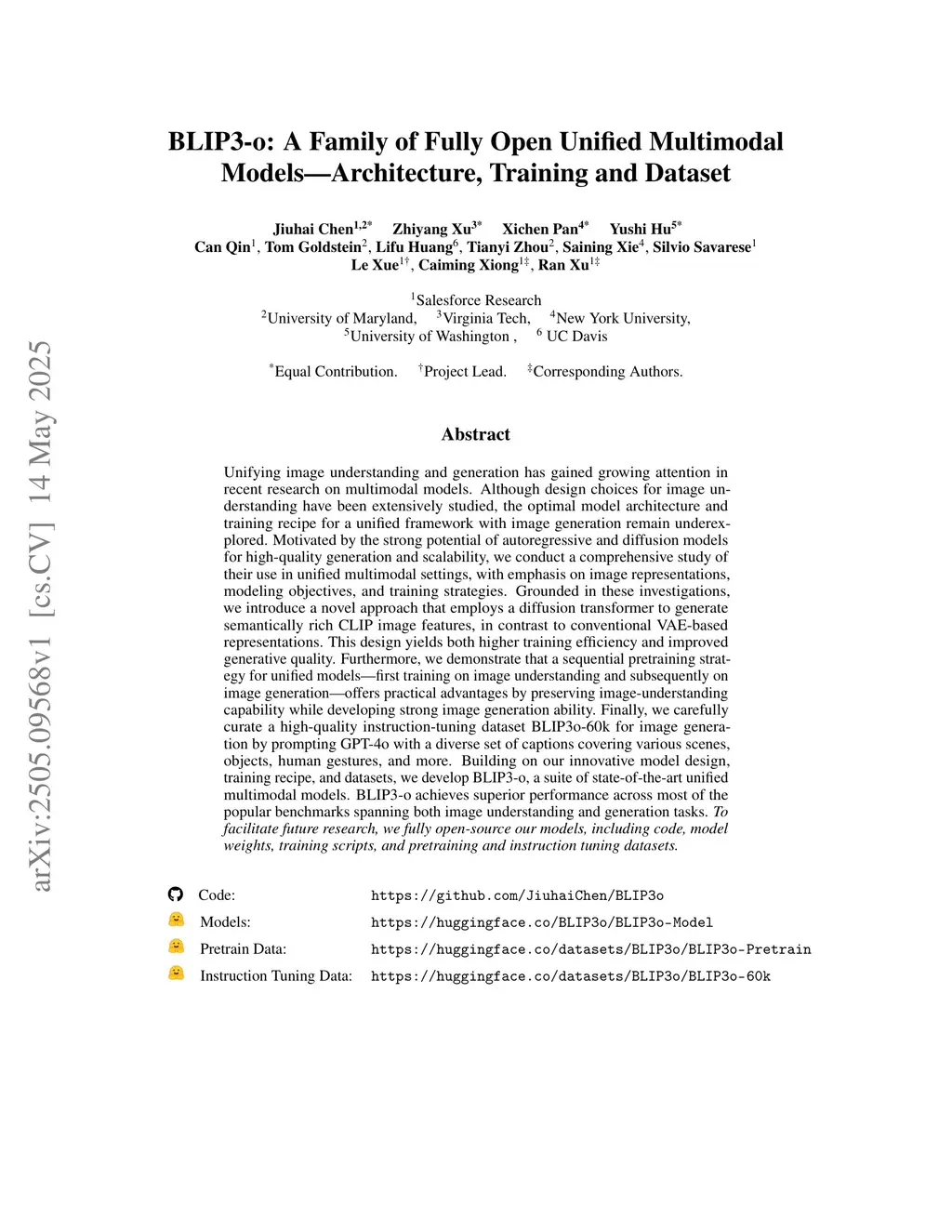 BLIP3-o: A Family of Fully Open Unified Multimodal Models-Architecture, Training and Dataset