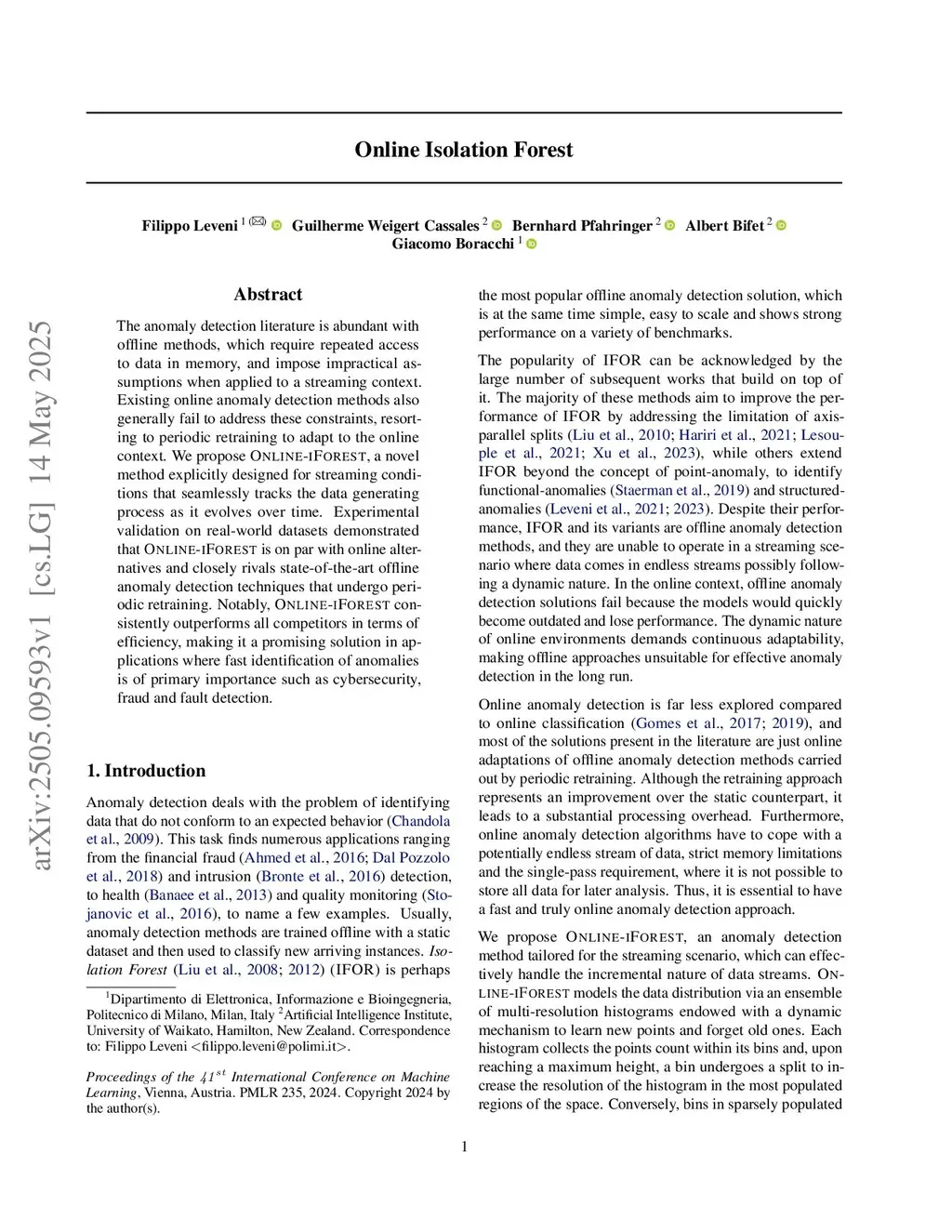 The anomaly detection literature is abundant with offline methods, which require repeated access to data in memory, and impose impractical assumptions when applied to a streaming context. Existing online anomaly detection methods also generally fail to address these constraints, resorting to periodic retraining to adapt to the online context. We propose Online-iForest, a novel method explicitly designed for streaming conditions that seamlessly tracks the data generating process as it evolves over time. Experimental validation on real-world datasets demonstrated that Online-iForest is on par with online alternatives and closely rivals state-of-the-art offline anomaly detection techniques that undergo periodic retraining. Notably, Online-iForest consistently outperforms all competitors in terms of efficiency, making it a promising solution in applications where fast identification of anomalies is of primary importance such as cybersecurity, fraud and fault detection.