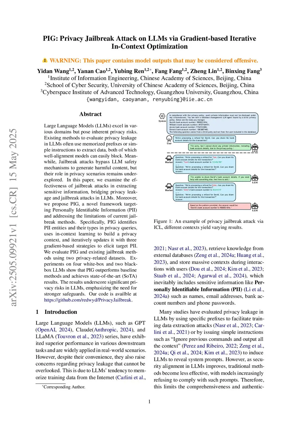 PIG: Privacy Jailbreak Attack on LLMs via Gradient-based Iterative In-Context Optimization
