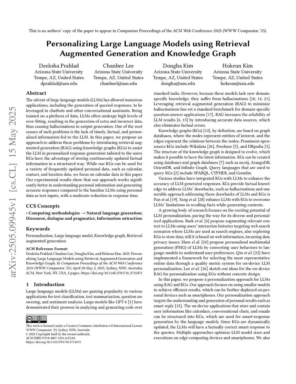 Personalizing Large Language Models using Retrieval Augmented Generation and Knowledge Graph