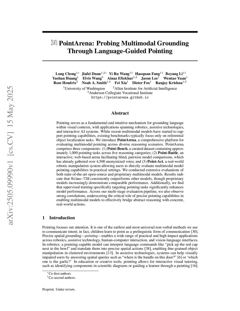 PointArena: Probing Multimodal Grounding Through Language-Guided Pointing
