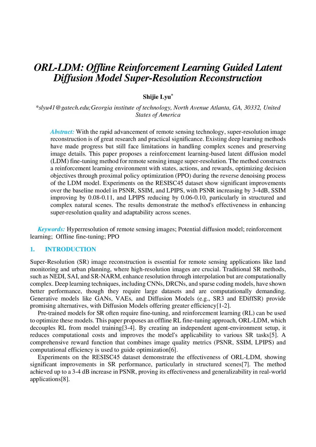 ORL-LDM: Offline Reinforcement Learning Guided Latent Diffusion Model Super-Resolution Reconstruction