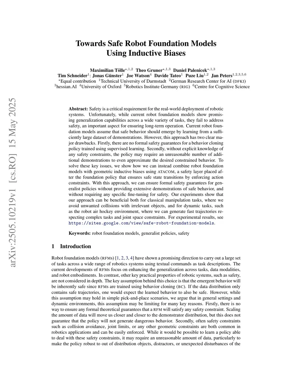 Towards Safe Robot Foundation Models Using Inductive Biases