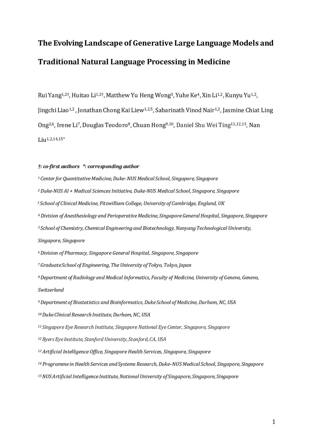 The Evolving Landscape of Generative Large Language Models and Traditional Natural Language Processing in Medicine
