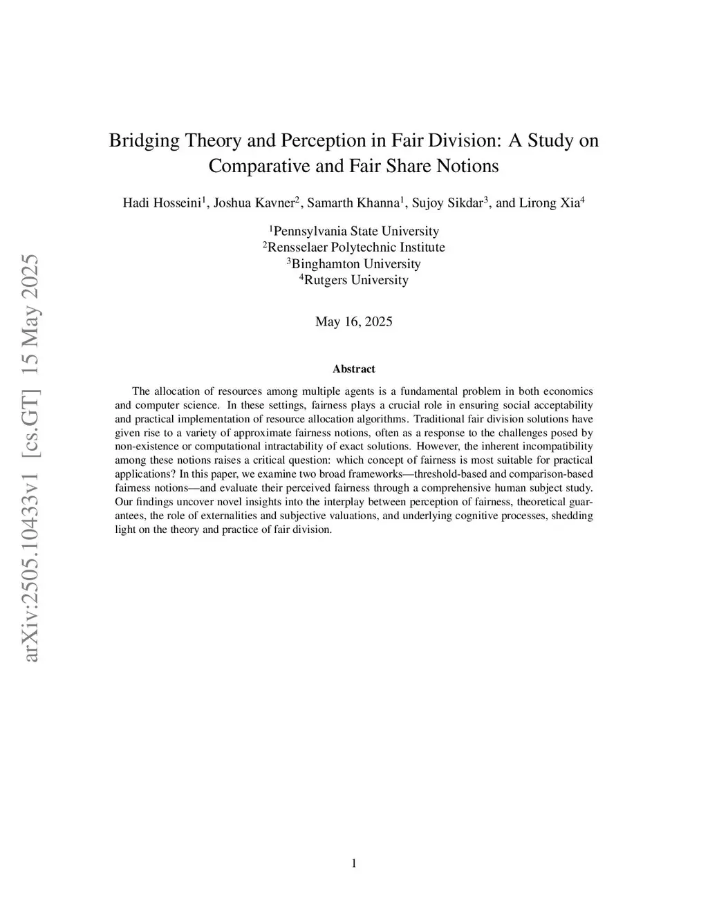 The allocation of resources among multiple agents is a fundamental problem in both economics and computer science. In these settings, fairness plays a crucial role in ensuring social acceptability and practical implementation of resource allocation algorithms. Traditional fair division solutions have given rise to a variety of approximate fairness notions, often as a response to the challenges posed by non-existence or computational intractability of exact solutions. However, the inherent incompatibility among these notions raises a critical question: which concept of fairness is most suitable for practical applications? In this paper, we examine two broad frameworks -- threshold-based and comparison-based fairness notions -- and evaluate their perceived fairness through a comprehensive human subject study. Our findings uncover novel insights into the interplay between perception of fairness, theoretical guarantees, the role of externalities and subjective valuations, and underlying cognitive processes, shedding light on the theory and practice of fair division.