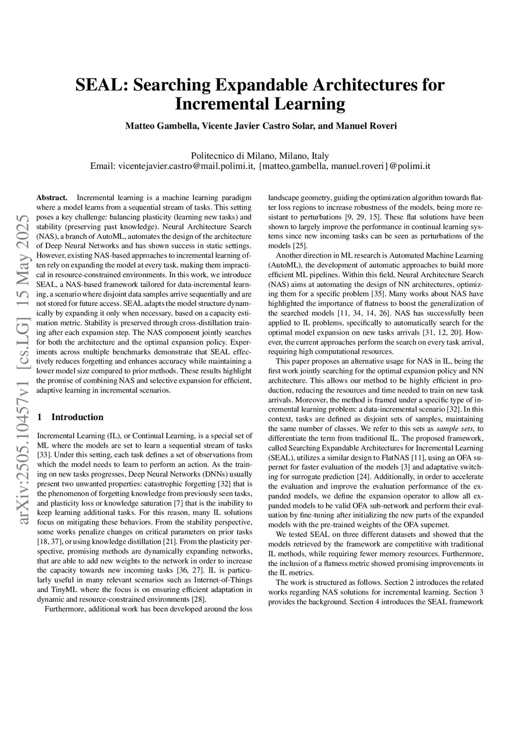 SEAL: Searching Expandable Architectures for Incremental Learning