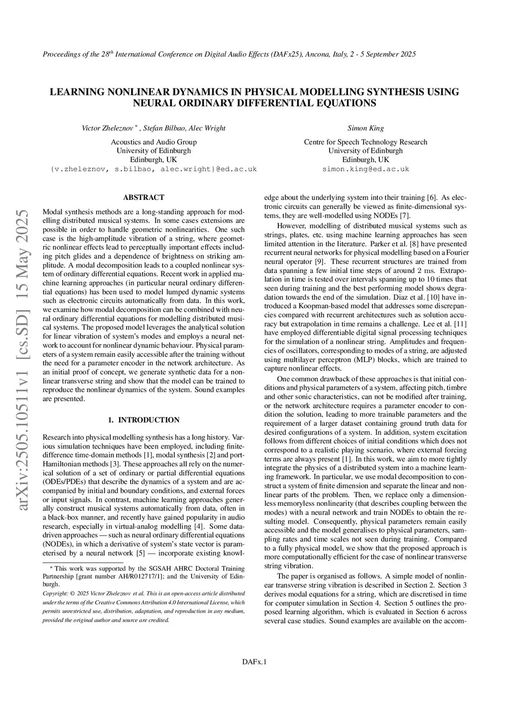 Learning Nonlinear Dynamics in Physical Modelling Synthesis using Neural Ordinary Differential Equations