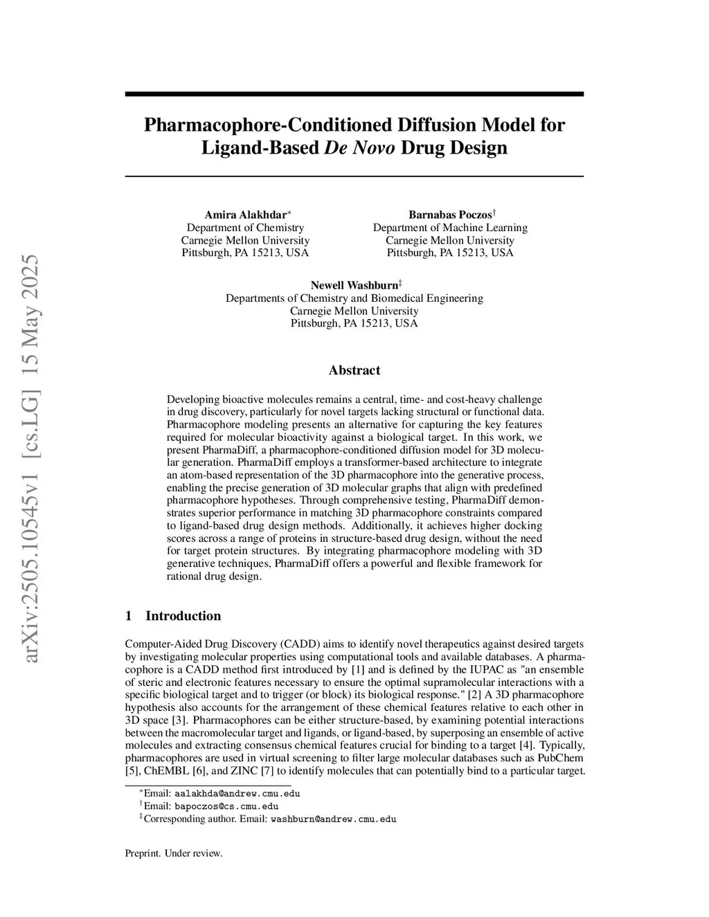 Pharmacophore-Conditioned Diffusion Model for Ligand-Based De Novo Drug Design