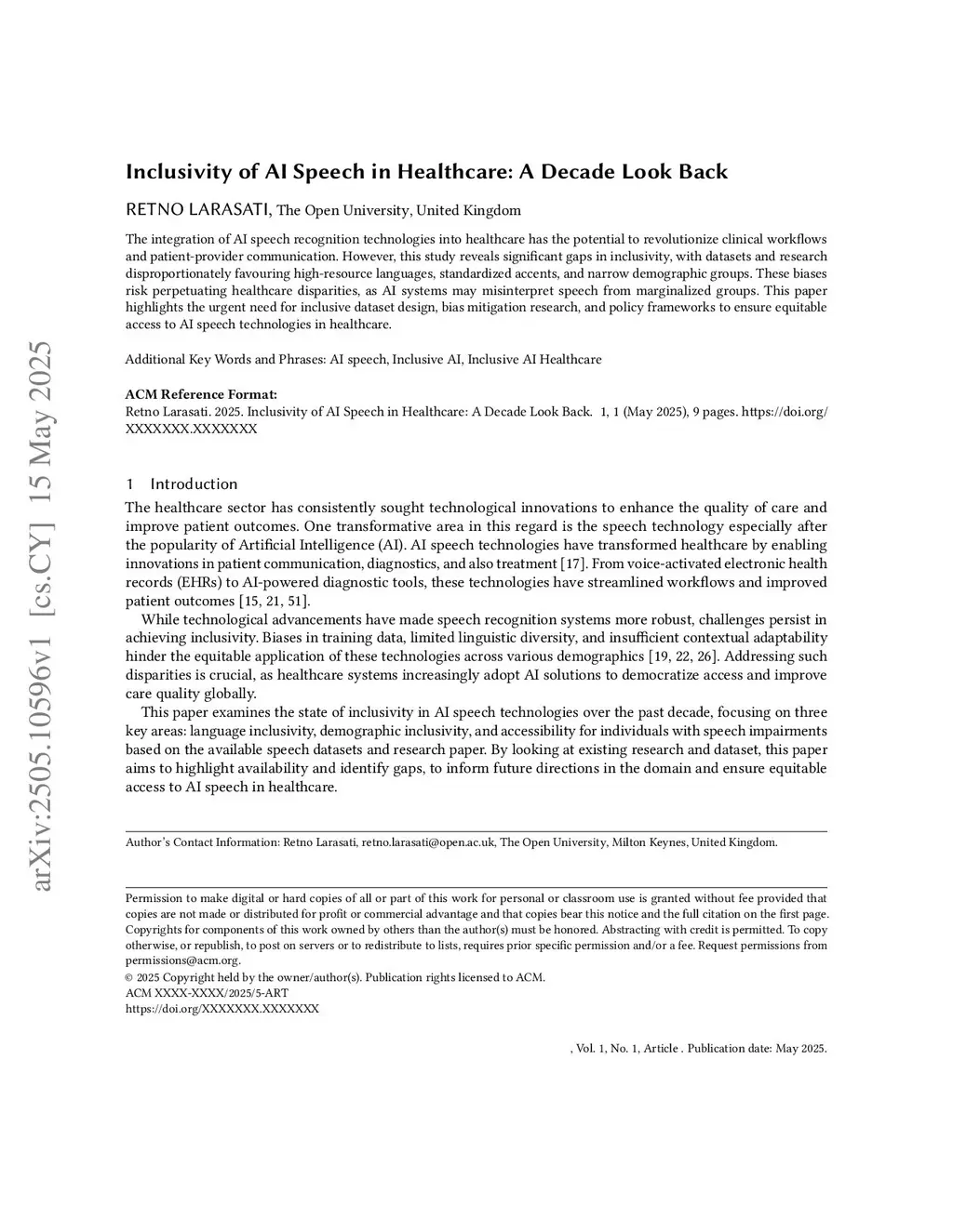 Inclusivity of AI Speech in Healthcare: A Decade Look Back