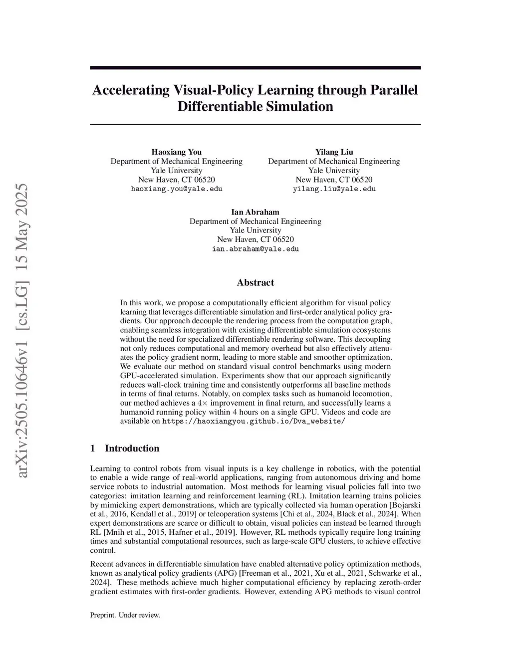 Accelerating Visual-Policy Learning through Parallel Differentiable Simulation