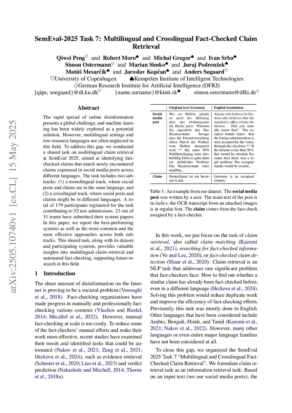 SemEval-2025 Task 7: Multilingual and Crosslingual Fact-Checked Claim Retrieval