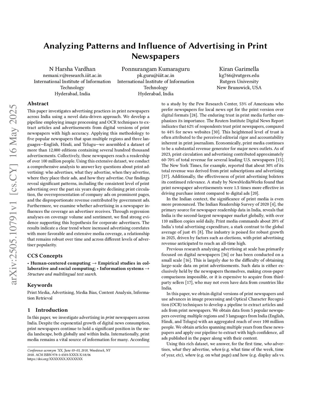 Analyzing Patterns and Influence of Advertising in Print Newspapers