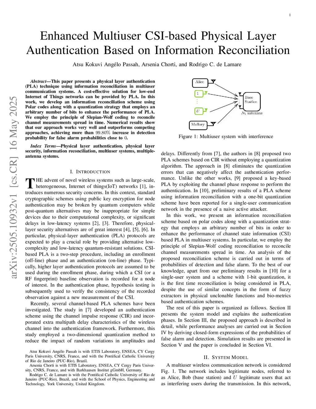 Enhanced Multiuser CSI-Based Physical Layer Authentication Based on Information Reconciliation