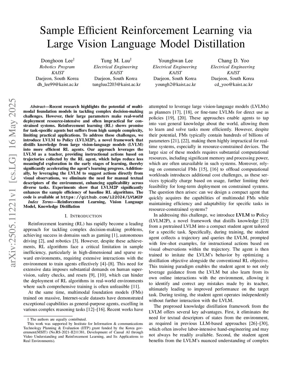 Sample Efficient Reinforcement Learning via Large Vision Language Model Distillation
