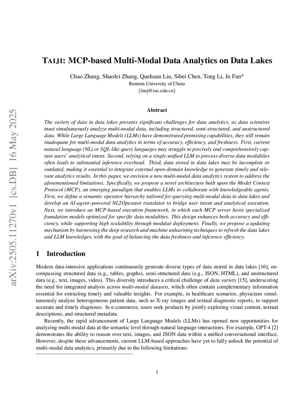 TAIJI: MCP-based Multi-Modal Data Analytics on Data Lakes