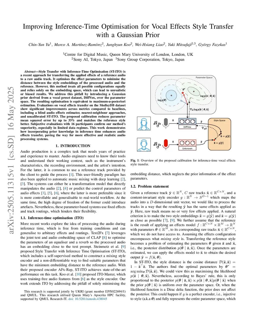 Improving Inference-Time Optimisation for Vocal Effects Style Transfer with a Gaussian Prior