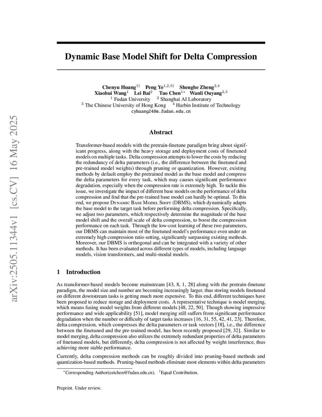 Dynamic Base model Shift for Delta Compression