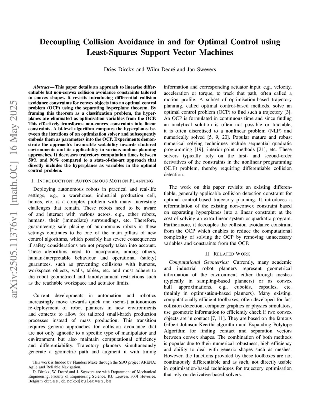 Decoupling Collision Avoidance in and for Optimal Control using Least-Squares Support Vector Machines