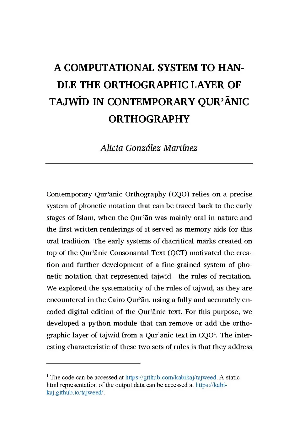 A computational system to handle the orthographic layer of tajwid in contemporary Quranic Orthography