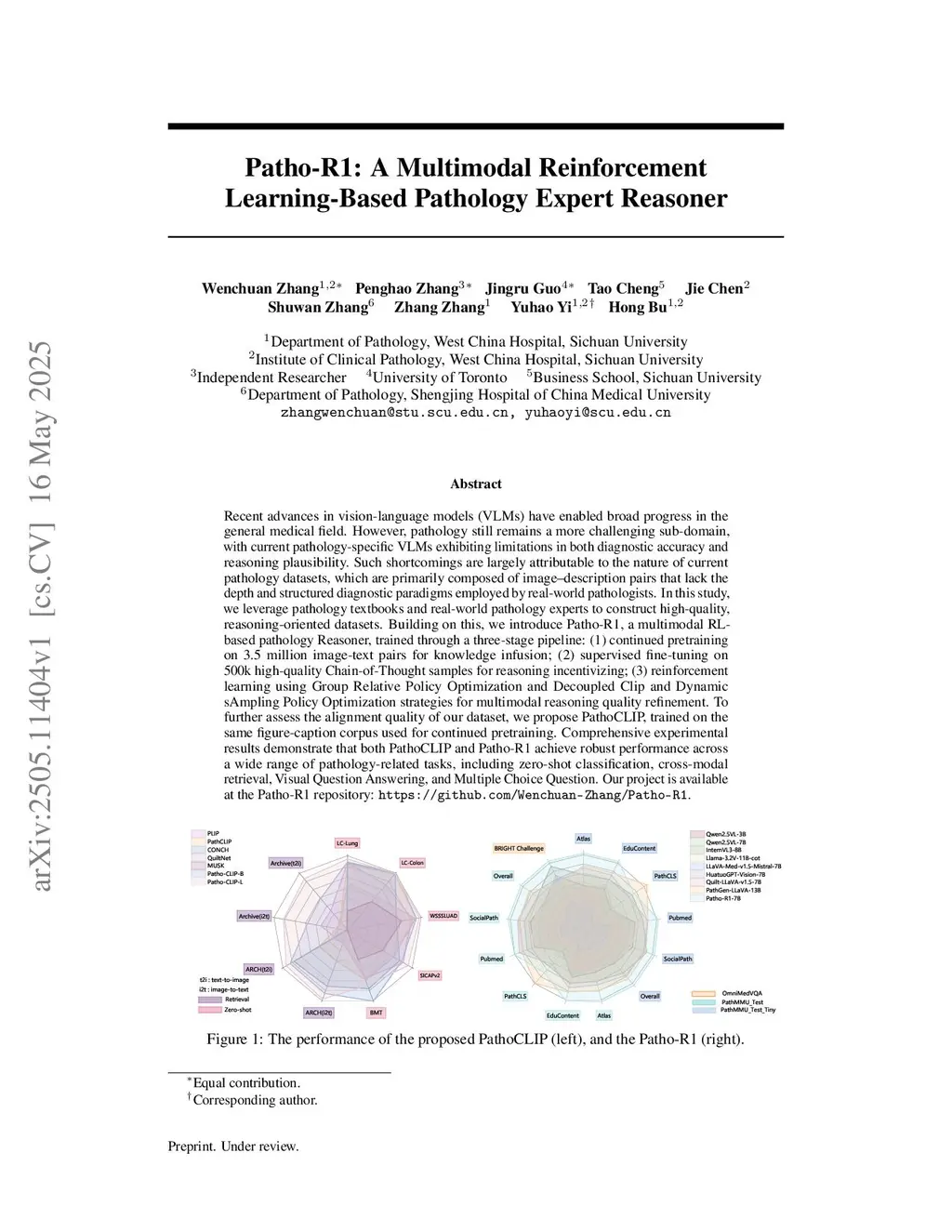 Recent advances in vision language models (VLMs) have enabled broad progress in the general medical field. However, pathology still remains a more challenging subdomain, with current pathology specific VLMs exhibiting limitations in both diagnostic accuracy and reasoning plausibility. Such shortcomings are largely attributable to the nature of current pathology datasets, which are primarily composed of image description pairs that lack the depth and structured diagnostic paradigms employed by real world pathologists. In this study, we leverage pathology textbooks and real world pathology experts to construct high-quality, reasoning-oriented datasets. Building on this, we introduce Patho-R1, a multimodal RL-based pathology Reasoner, trained through a three-stage pipeline: (1) continued pretraining on 3.5 million image-text pairs for knowledge infusion; (2) supervised fine-tuning on 500k high-quality Chain-of-Thought samples for reasoning incentivizing; (3) reinforcement learning using Group Relative Policy Optimization and Decoupled Clip and Dynamic sAmpling Policy Optimization strategies for multimodal reasoning quality refinement. To further assess the alignment quality of our dataset, we propose Patho-CLIP, trained on the same figure-caption corpus used for continued pretraining. Comprehensive experimental results demonstrate that both Patho-CLIP and Patho-R1 achieve robust performance across a wide range of pathology-related tasks, including zero-shot classification, cross-modal retrieval, Visual Question Answering, and Multiple Choice Question. Our project is available at the Patho-R1 repository:this https URL.