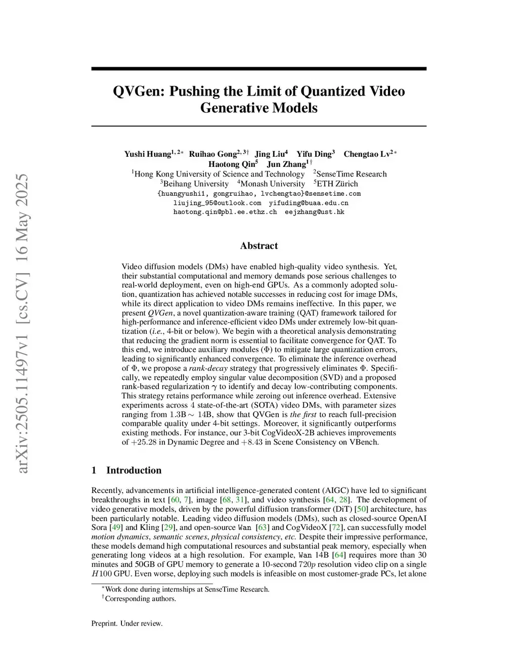 QVGen: Pushing the Limit of Quantized Video Generative Models