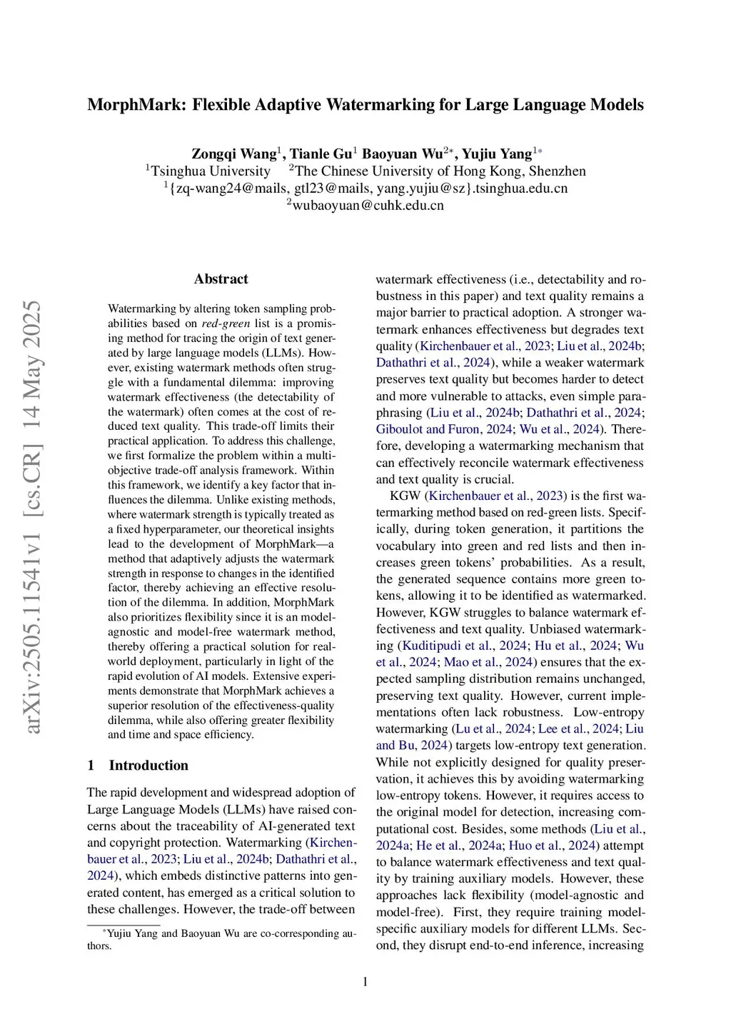 Watermarking by altering token sampling probabilities based on red-green list is a promising method for tracing the origin of text generated by large language models (LLMs). However, existing watermark methods often struggle with a fundamental dilemma: improving watermark effectiveness (the detectability of the watermark) often comes at the cost of reduced text quality. This trade-off limits their practical application. To address this challenge, we first formalize the problem within a multi-objective trade-off analysis framework. Within this framework, we identify a key factor that influences the dilemma. Unlike existing methods, where watermark strength is typically treated as a fixed hyperparameter, our theoretical insights lead to the development of MorphMarka method that adaptively adjusts the watermark strength in response to changes in the identified factor, thereby achieving an effective resolution of the dilemma. In addition, MorphMark also prioritizes flexibility since it is a model-agnostic and model-free watermark method, thereby offering a practical solution for real-world deployment, particularly in light of the rapid evolution of AI models. Extensive experiments demonstrate that MorphMark achieves a superior resolution of the effectiveness-quality dilemma, while also offering greater flexibility and time and space efficiency.