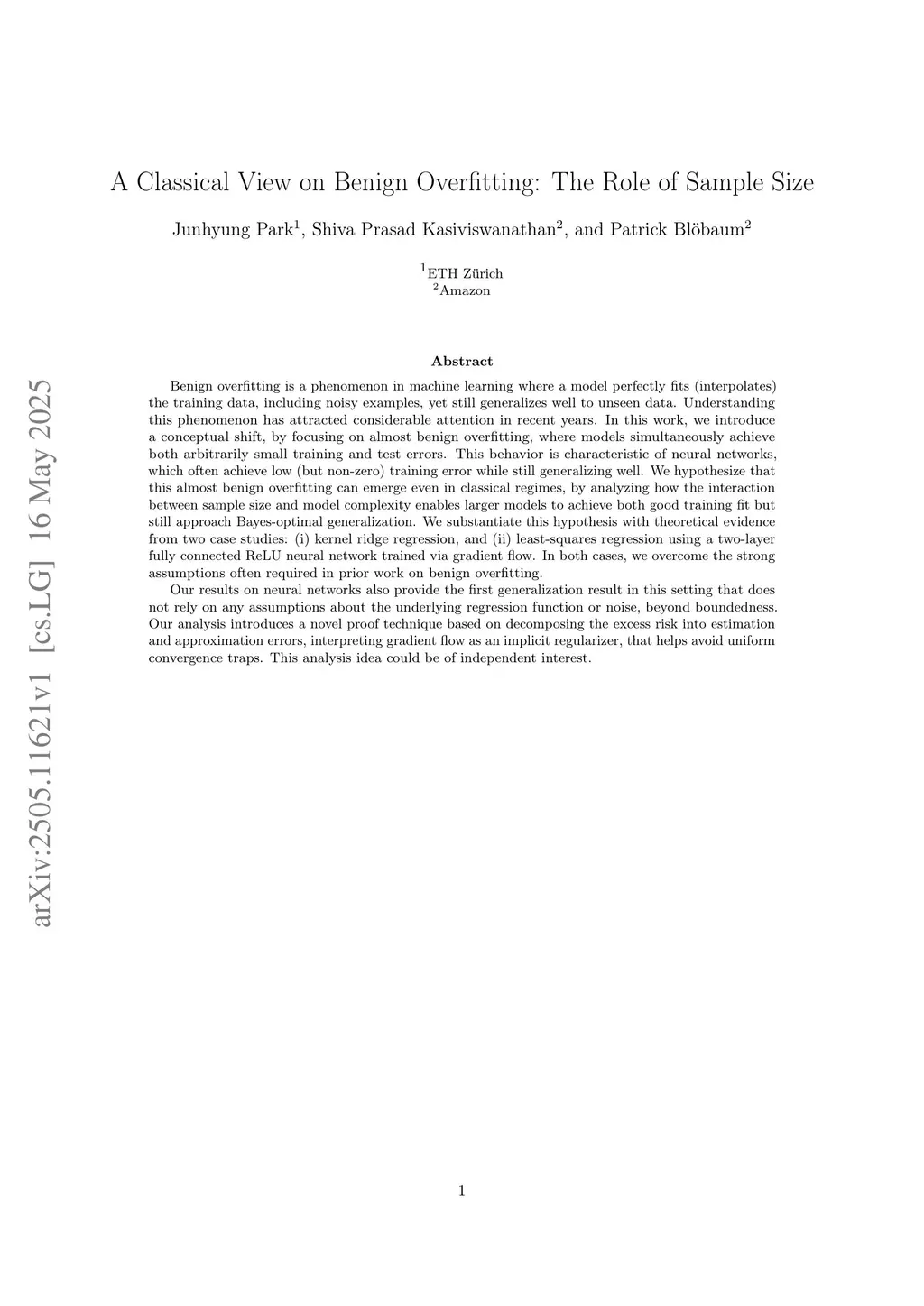 A Classical View on Benign Overfitting: The Role of Sample Size