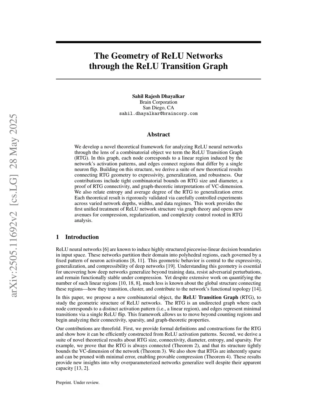 We develop a novel theoretical framework for analyzing ReLU neural networks through the lens of a combinatorial object we term the ReLU Transition Graph (RTG). In this graph, each node corresponds to a linear region induced by the network's activation patterns, and edges connect regions that differ by a single neuron flip. Building on this structure, we derive a suite of new theoretical results connecting RTG geometry to expressivity, generalization, and robustness. Our contributions include tight combinatorial bounds on RTG size and diameter, a proof of RTG connectivity, and graph-theoretic interpretations of VC-dimension. We also relate entropy and average degree of the RTG to generalization error. Each theoretical result is rigorously validated via carefully controlled experiments across varied network depths, widths, and data regimes. This work provides the first unified treatment of ReLU network structure via graph theory and opens new avenues for compression, regularization, and complexity control rooted in RTG analysis.