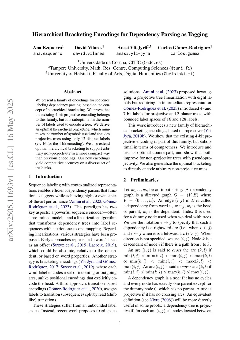 We present a family of encodings for sequence labeling dependency parsing, based on the concept of hierarchical bracketing. We prove that the existing 4-bit projective encoding belongs to this family, but it is suboptimal in the number of labels used to encode a tree. We derive an optimal hierarchical bracketing, which minimizes the number of symbols used and encodes projective trees using only 12 distinct labels (vs. 16 for the 4-bit encoding). We also extend optimal hierarchical bracketing to support arbitrary non-projectivity in a more compact way than previous encodings. Our new encodings yield competitive accuracy on a diverse set of treebanks.