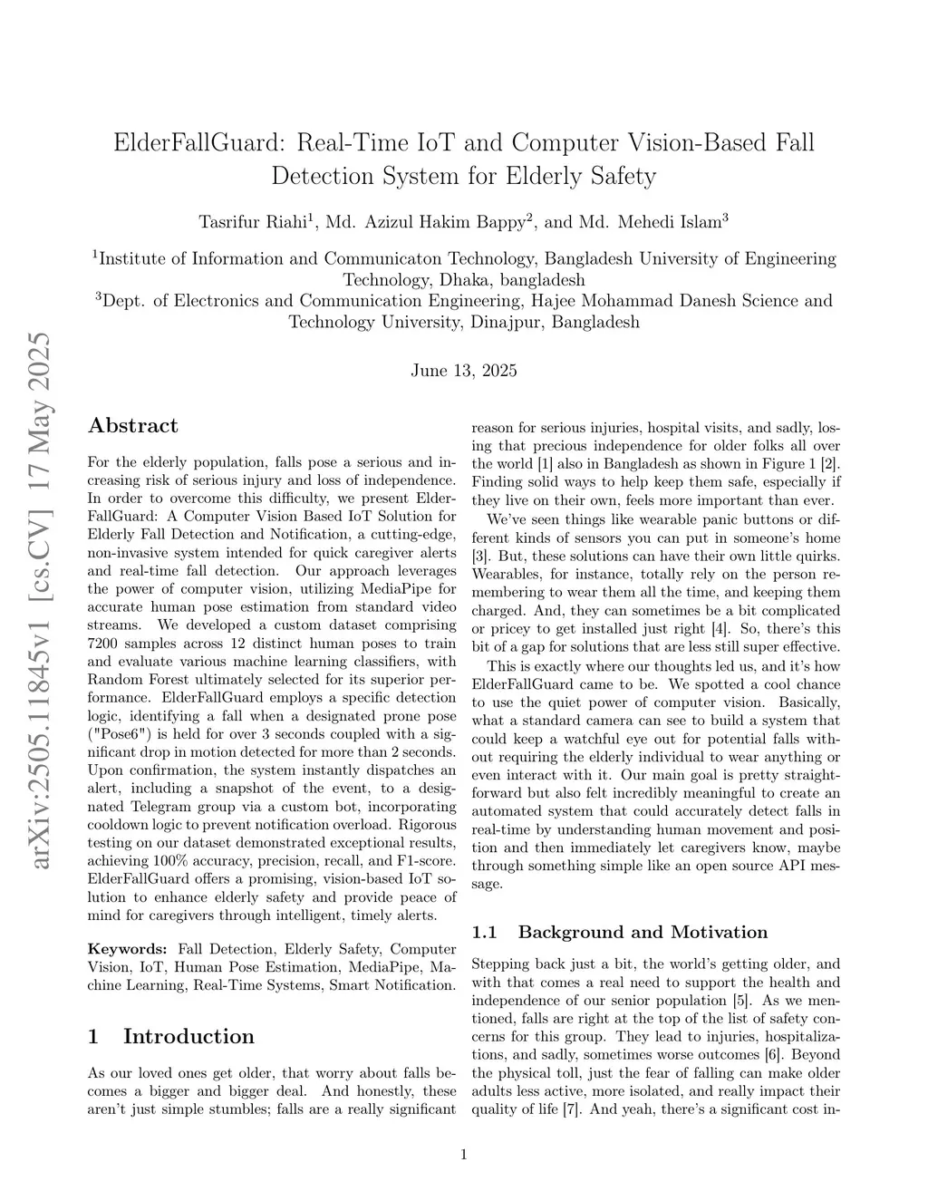 ElderFallGuard: Real-Time IoT and Computer Vision-Based Fall Detection System for Elderly Safety