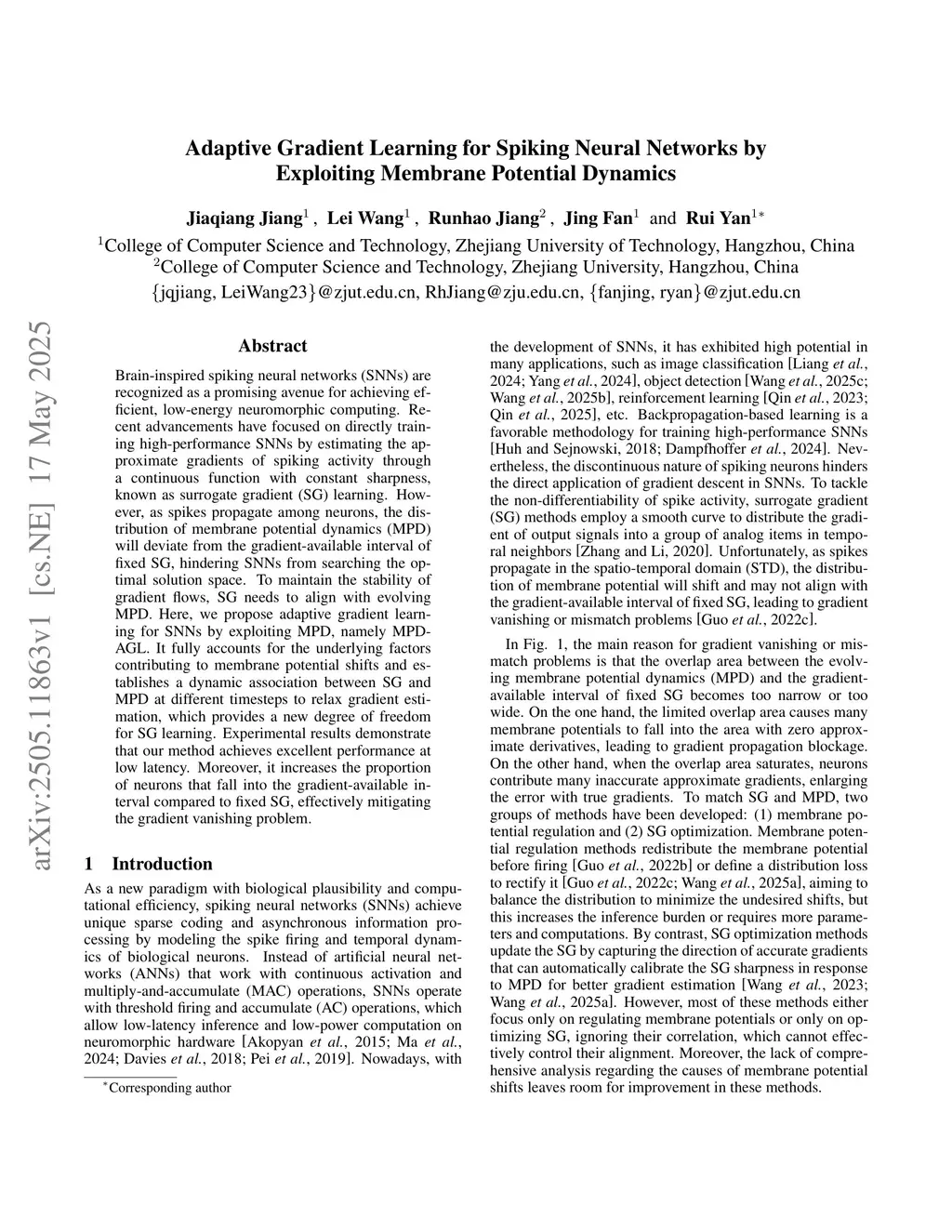 Adaptive Gradient Learning for Spiking Neural Networks by Exploiting Membrane Potential Dynamics