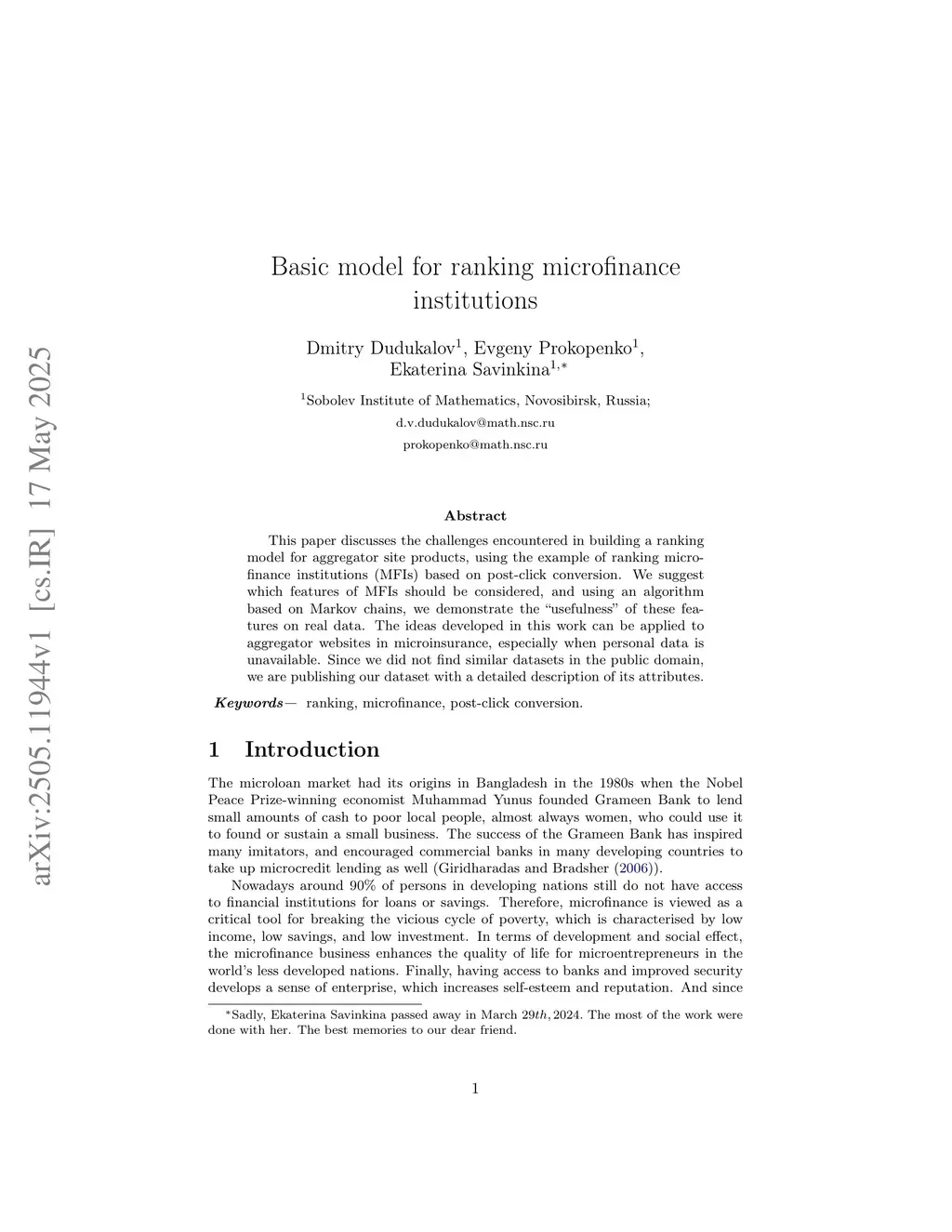 This paper discusses the challenges encountered in building a ranking model for aggregator site products, using the example of ranking microfinance institutions (MFIs) based on post-click conversion. We suggest which features of MFIs should be considered, and using an algorithm based on Markov chains, we demonstrate the ``usefulness'' of these features on real data. The ideas developed in this work can be applied to aggregator websites in microinsurance, especially when personal data is unavailable. Since we did not find similar datasets in the public domain, we are publishing our dataset with a detailed description of its attributes.