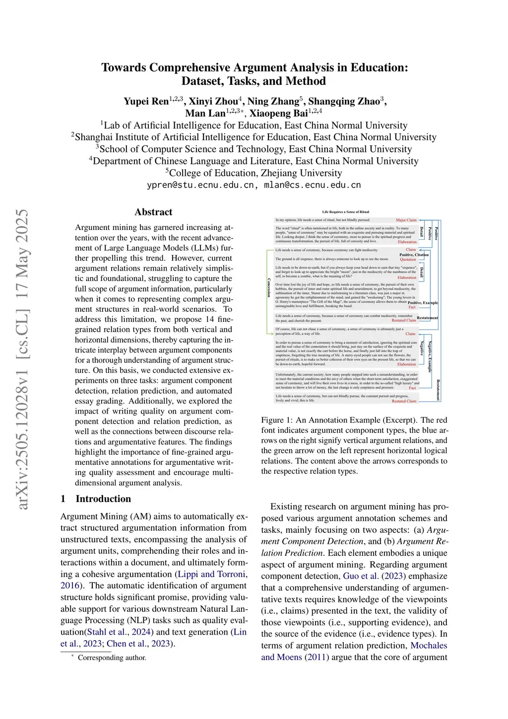 Towards Comprehensive Argument Analysis in Education: Dataset, Tasks, and Method