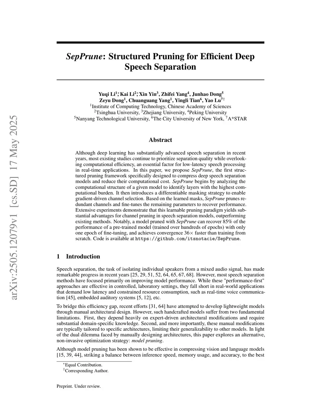 SepPrune: Structured Pruning for Efficient Deep Speech Separation
