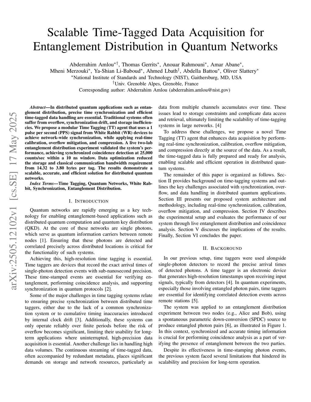 In distributed quantum applications such as entanglement distribution, precise time synchronization and efficient time-tagged data handling are essential. Traditional systems often suffer from overflow, synchronization drift, and storage inefficiencies. We propose a modular Time Tagging (TT) agent that uses a 1 pulse per second (PPS) signal from White Rabbit (WR) devices to achieve network-wide synchronization, while applying real-time calibration, overflow mitigation, and compression. A live two-lab entanglement distribution experiment validated the system's performance, achieving synchronized coincidence detection at 25,000 counts/sec.