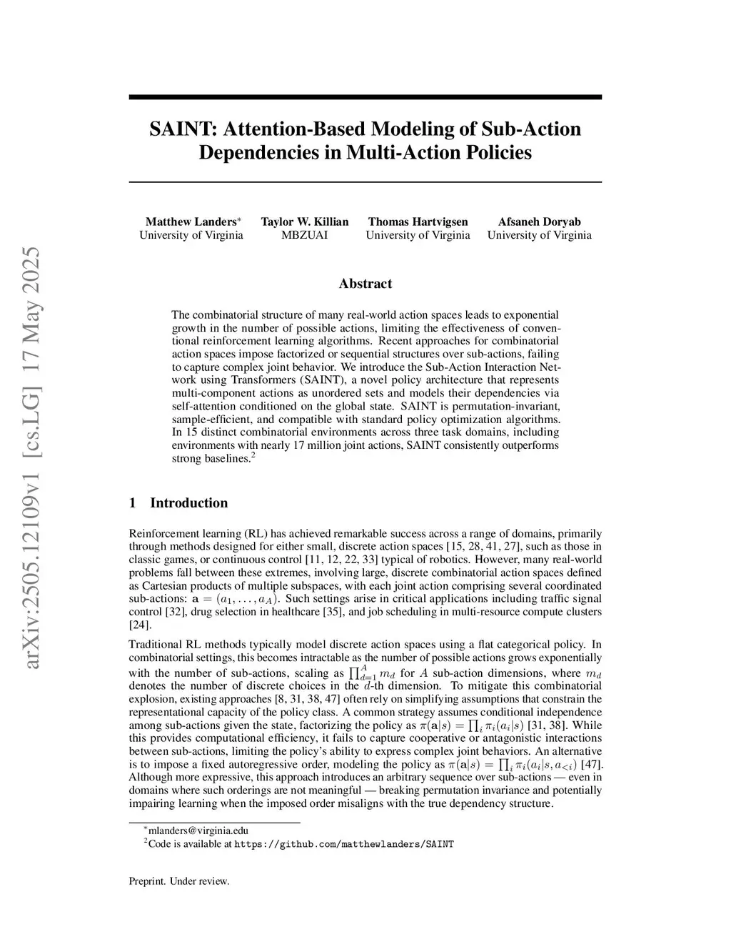SAINT: Attention-Based Policies for Discrete Combinatorial Action Spaces