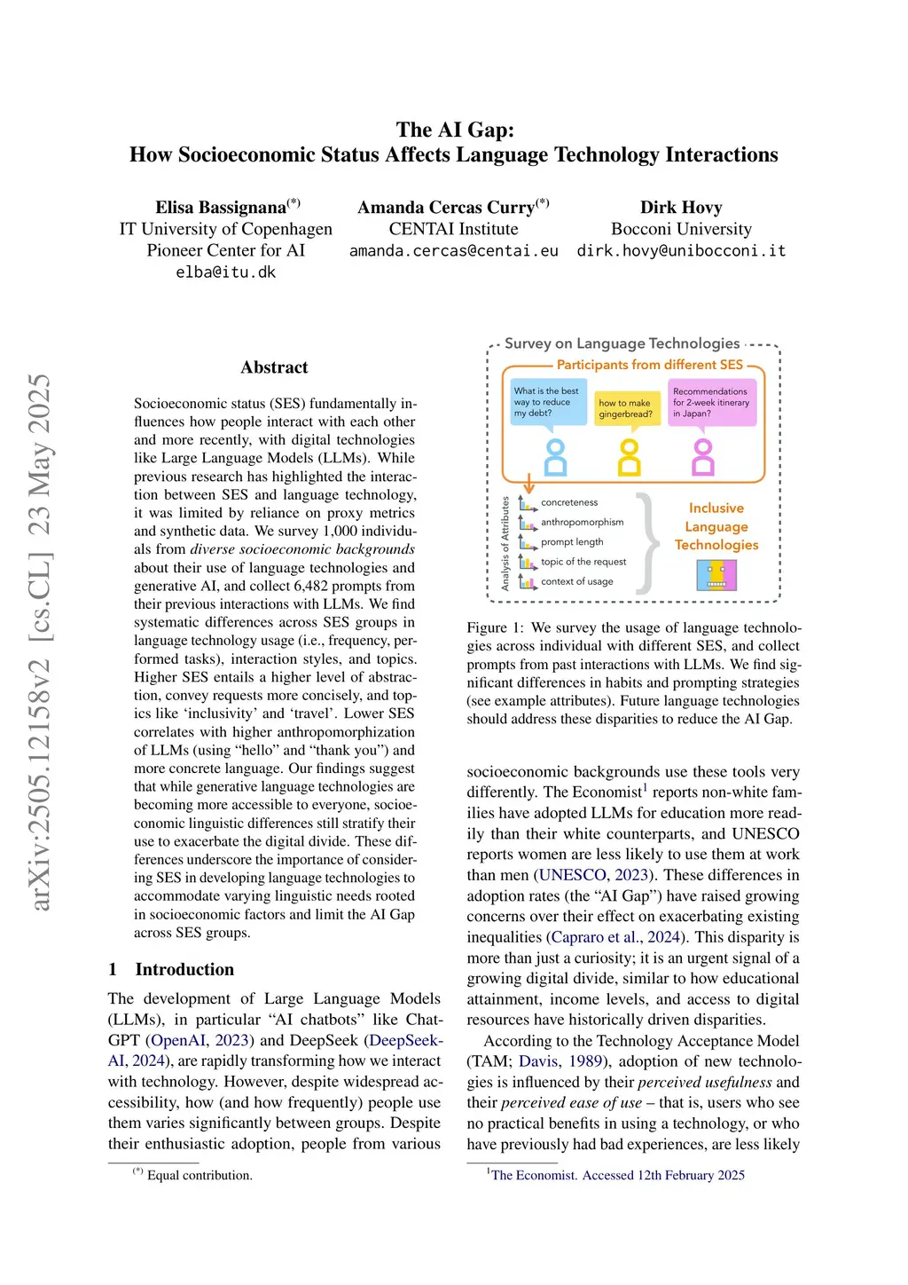 The AI Gap: How Socioeconomic Status Affects Language Technology Interactions