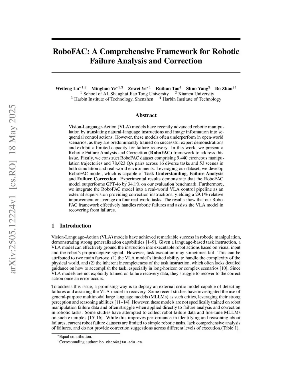 RoboFAC: A Comprehensive Framework for Robotic Failure Analysis and Correction