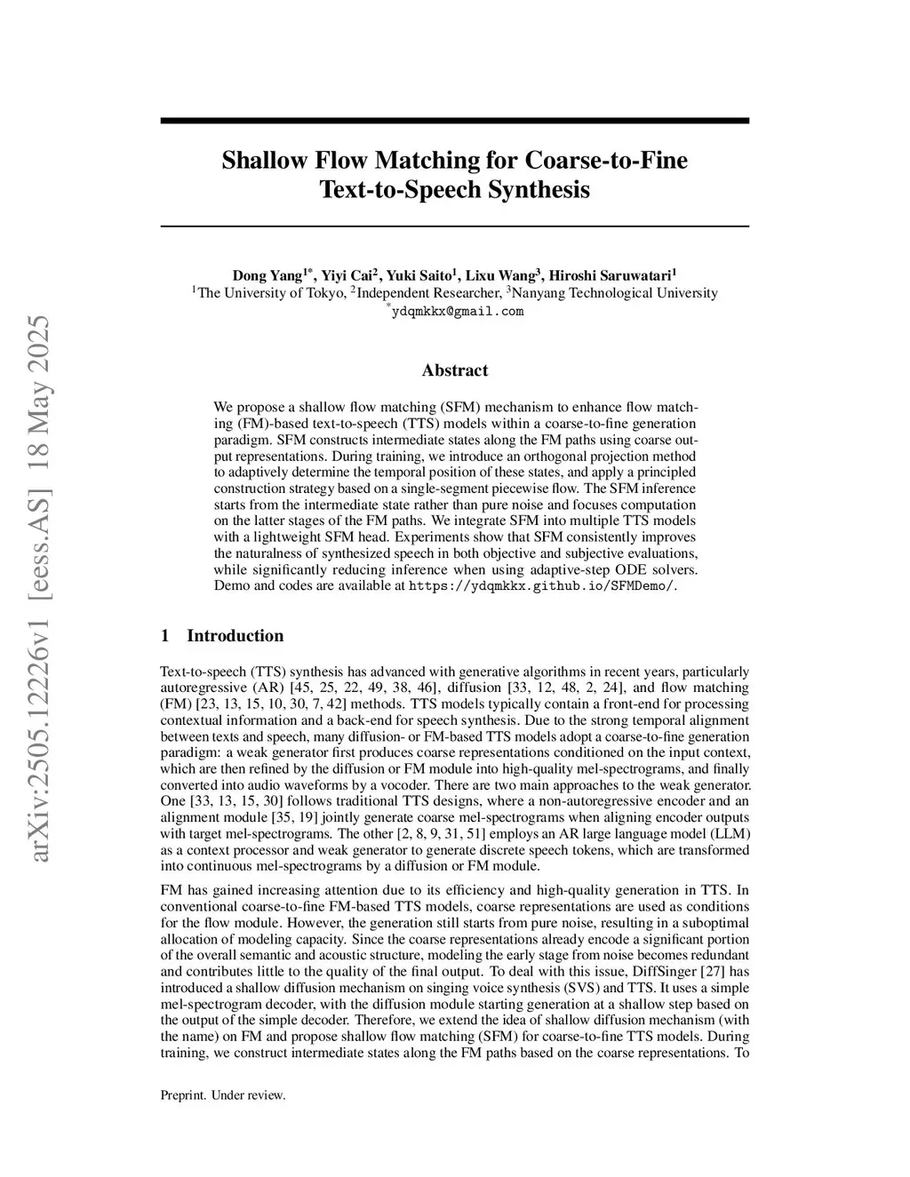 Shallow Flow Matching for Coarse-to-Fine Text-to-Speech Synthesis