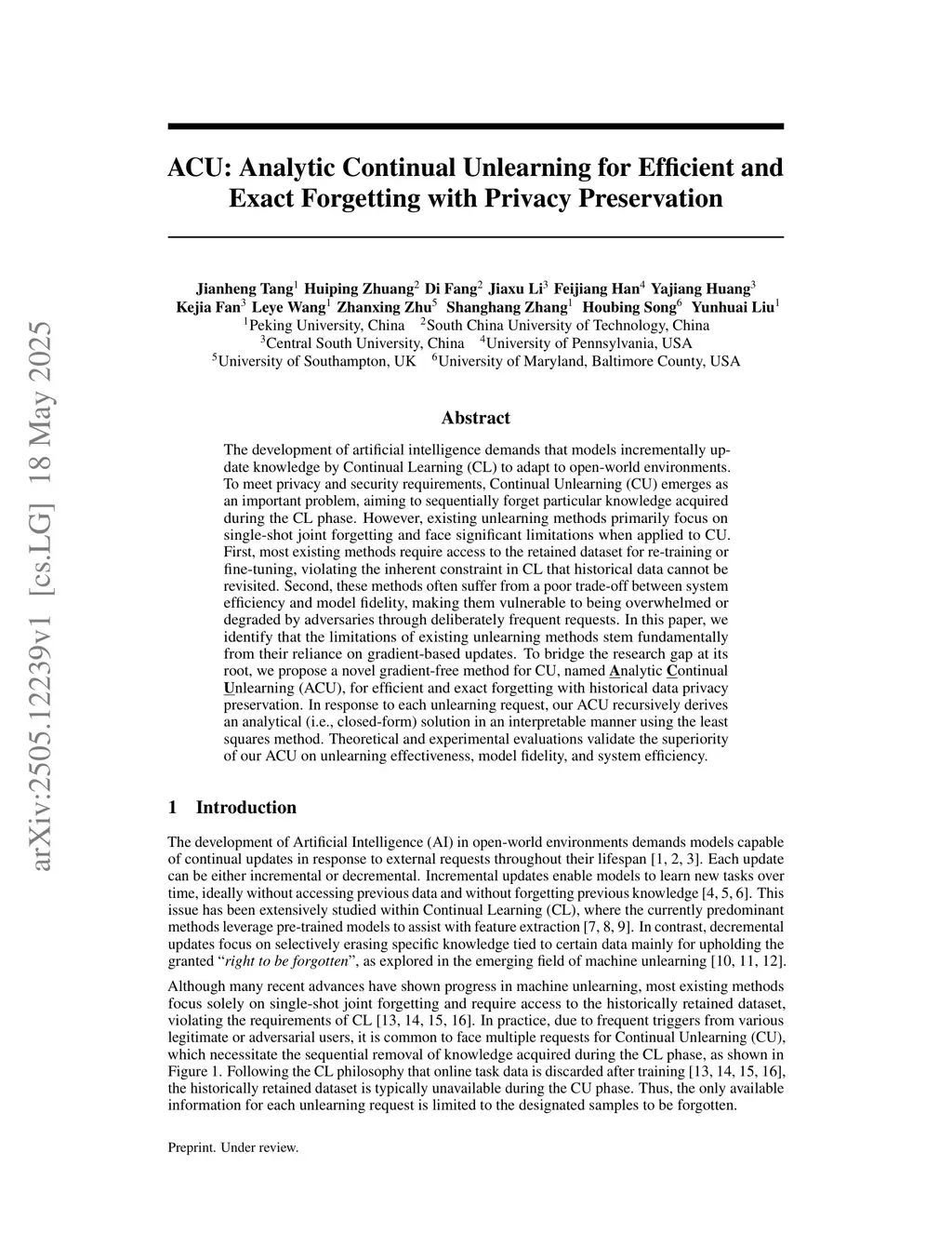 ACU: Analytic Continual Unlearning for Efficient and Exact Forgetting with Privacy Preservation